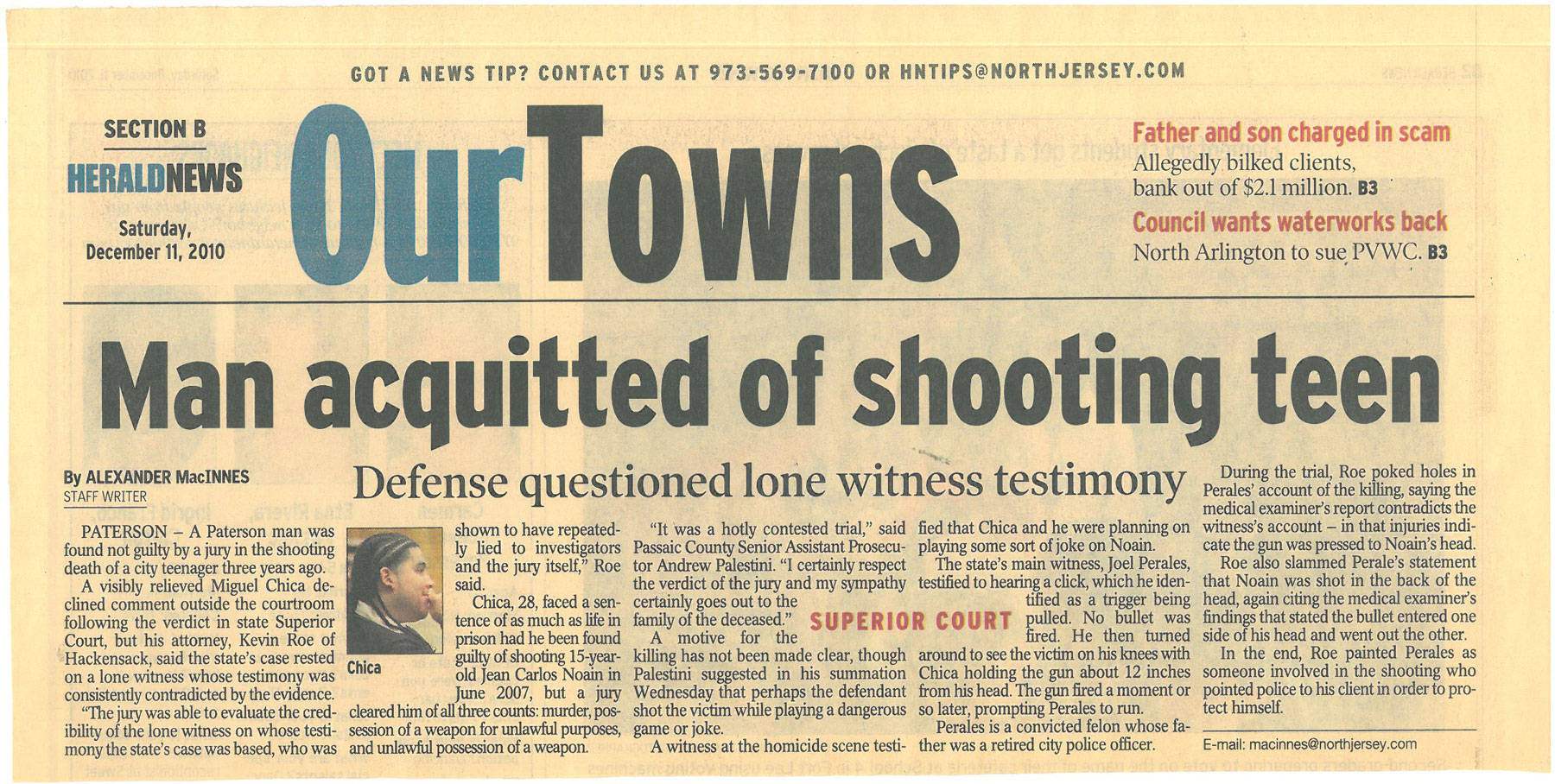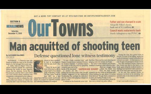 On December 10, 2011, a jury acquitted Miguel Chica, 28, of murder following a lengthy trial. The case garnered attention as a result of the testimony of Joel Perales, who claimed to have witnessed Chica shoot and kill the young man.